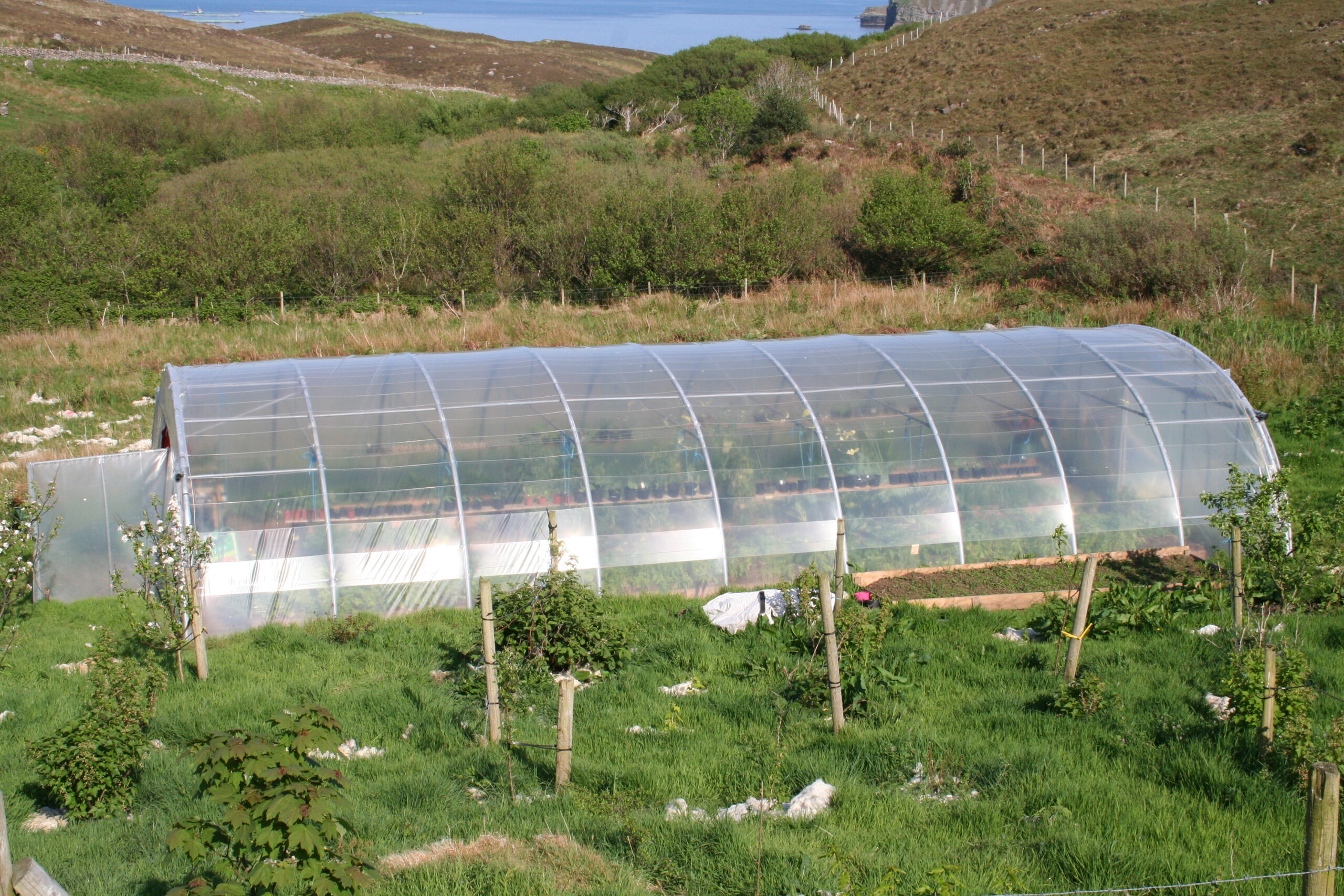 Never mind how cold it is in your garden; the sun is getting higher every day and even short clear spells will allow it to build up a lot of heat in your glasshouse or polytunnel. You might think this is a good thing, but not always so. Lettuce seed won’t germinate if it’s too warm, and temperatures above about 35°C (95°F) will destroy the red pigment in ripening tomatoes so they never colour up properly. Overheated plants need more water to keep cool. As well as that, high temperatures put plants under stress and promote diseases such as grey mould and pests such as red spider mites. You can’t stand there 24/7, thermometer in hand, to open and close doors and vents with each change in temperature. Ordinary mortals adjust the ventilation once in the morning for the expected daytime temperatures and once in the evening for the night, and that’s near enough most of the time. The weather forecast can help you decide how much ventilation to give in the morning. A recording thermometer can show you how you did today, helping you to fine-tune your settings for tomorrow. End doors alone give enough ventilation for most polytunnels up to about 20 metres long. Side windows, roll-up vents and louvre vents are good but not cheap. Glasshouse vents can be fitted with gas-filled struts that automatically push them further open when they get warmer, without needing electricity. The best ventilation comes from a through flow of air, so open both ends of a polytunnel or more than one window in a glasshouse. Open many vents a little bit instead of opening two vents wide to reduce draughts. Be cool!